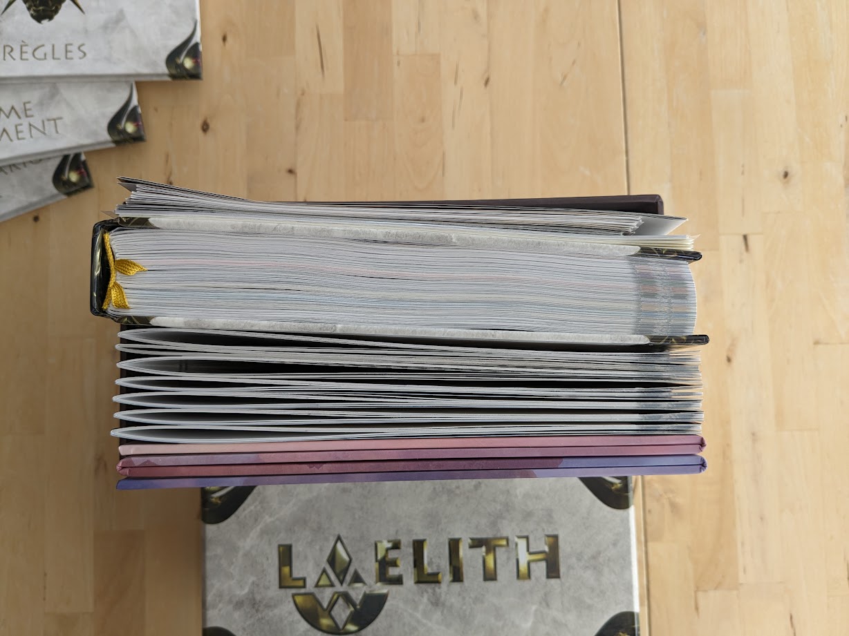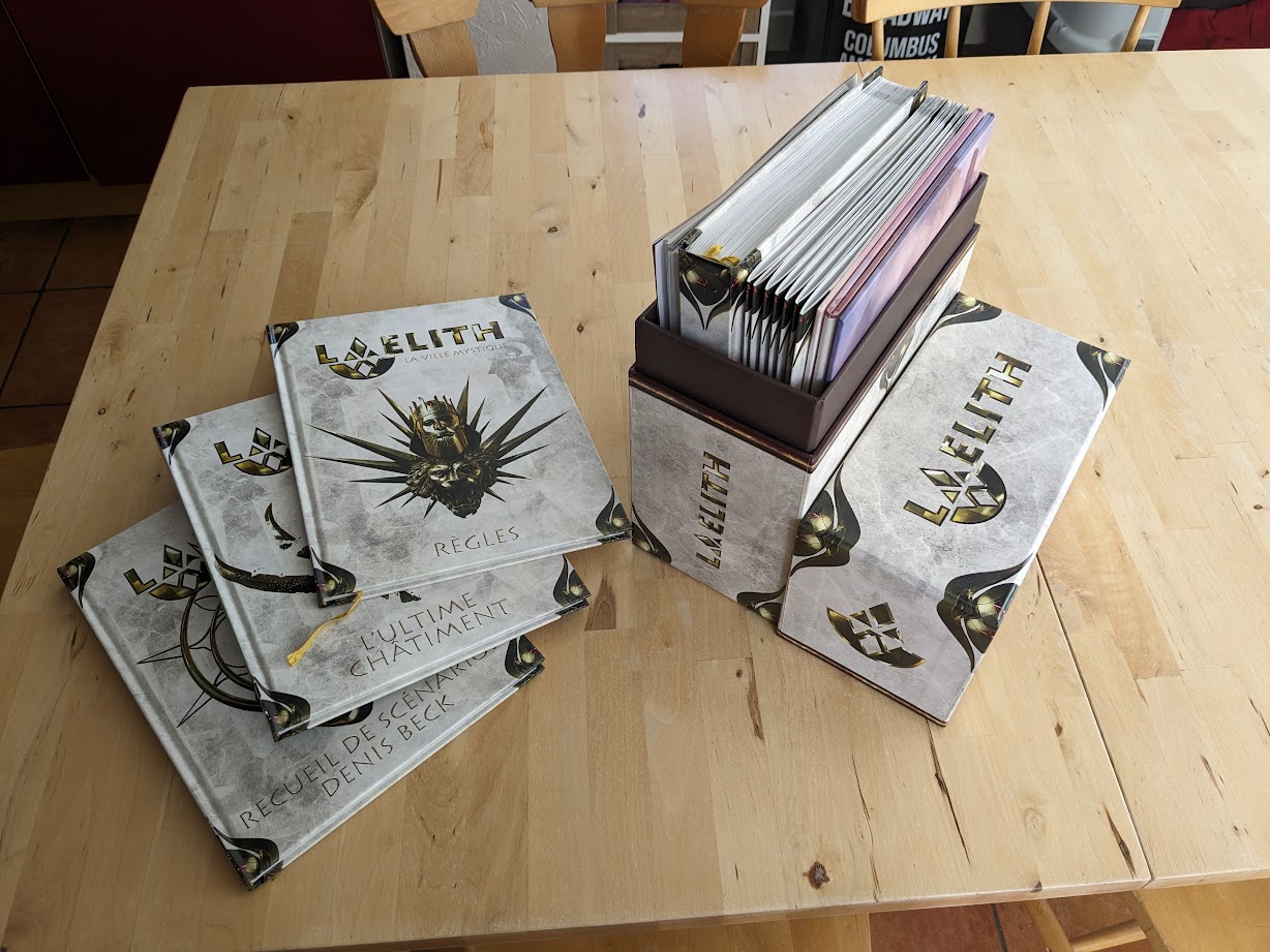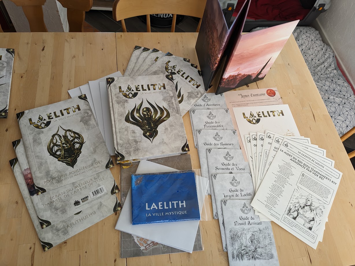 La boîte contenant Laelith, la Cité mystique + Ecran du MJ + Guide pratique + 4 × Guide du joueur + 2 cartes A2 de Laelith