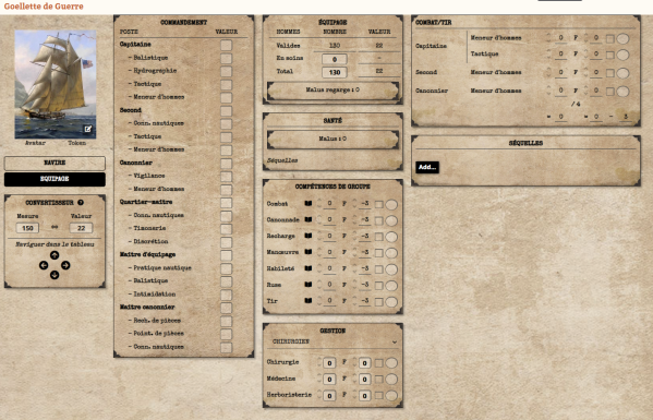 Hey, un grand merci pour ton soutien et tes encouragements. On n'a bossé dur pendant 4 mois et le résultat est vraiment top. Le craft de la fiche navire est à tomber à la renverse. On n'a automatisé tout ce qui pouvait l'être pour rendre dynamique les combats en mer. Idem avec la gestion de l'équipage. Reste plus qu'à espérer que les joueurs viennent tester le système gratuit et créés des tables pour jouer avec. On m'a conseillé de mettre des copies d'écran, mais il faut que mes images soient hébergées sur un serveur. Tu me conseillerais quoi pour booster sa visibilité ?