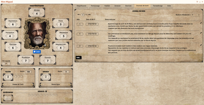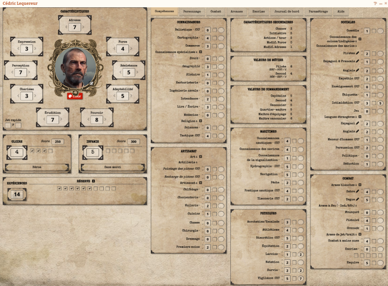J'aurais une question aussi , Sam. Quand je crèe une fiche de navire ou de perso je n'obtiens qu'un fond noir et non le skin parchemin comme sur les photos. Faut il telecharger d'autres skins sur letsrole ou il y a qq chose que j'ai pas captè ? Je précise que je suis totalement nouveau sur letsrole.