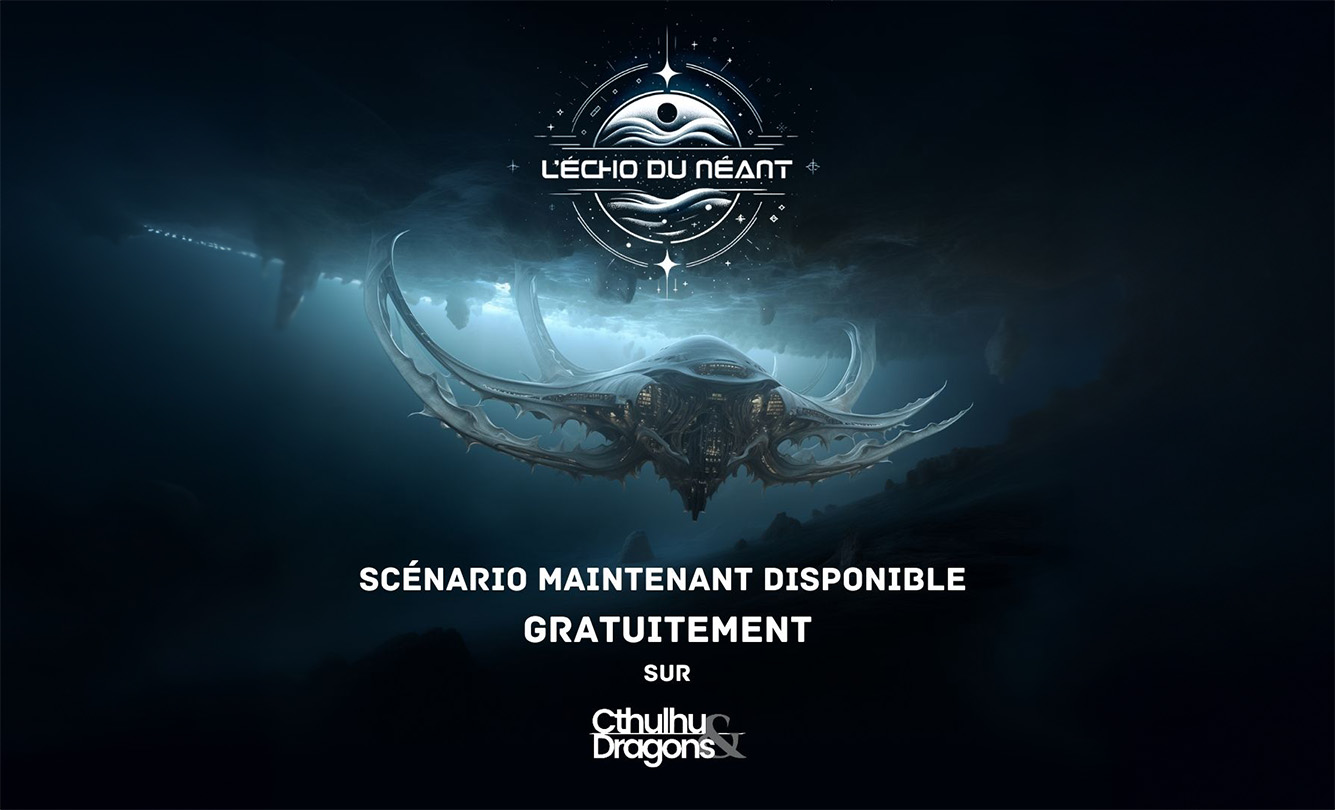 Téléchargement Gratuit : J'ai décidé de rendre ce scénario accessible à tous et il est disponible gratuitement. Vous pouvez le télécharger en suivant le lien L'écho du néant disponible ! (cthulhuanddragons.com)