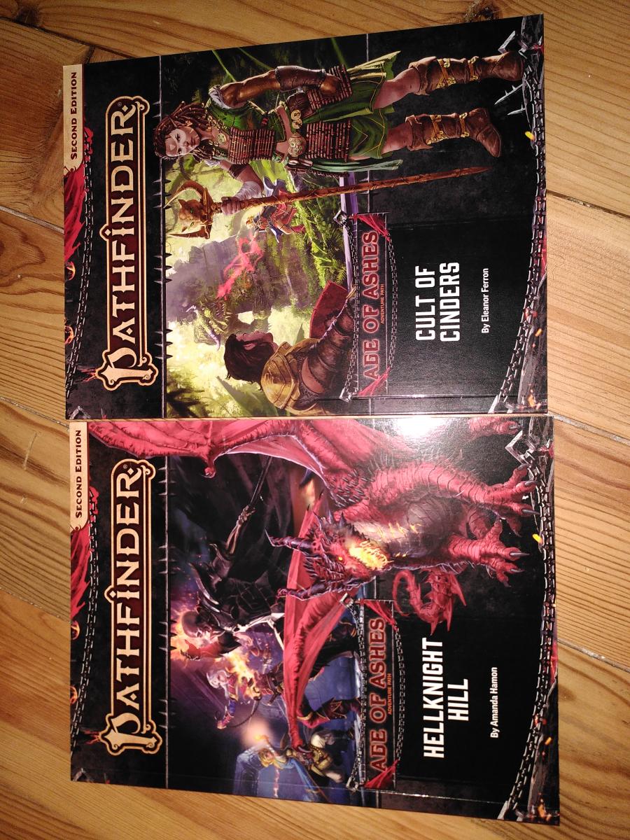 - Pathfinder 2nd Edition (VO) - Age of Ashes 1 et 2 (Hellknight Hill et Cult of Cinders) - Prix : 12 € les deux livres