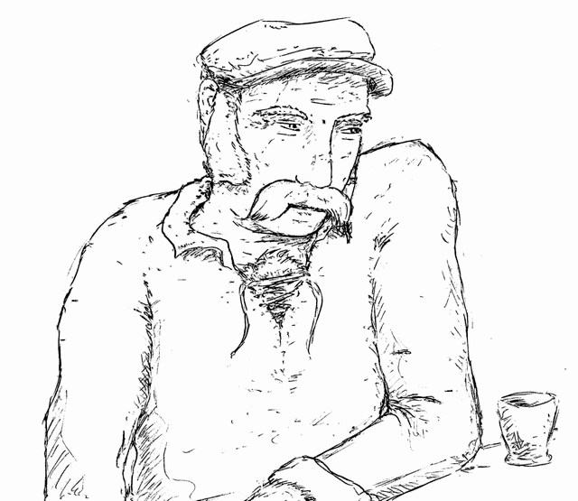 Puis les deux bonhommes semblent à nouveau absorber par leurs petits verres de gnole.