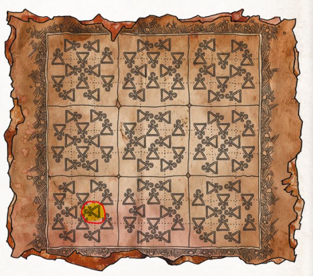 en vert les cases où l'on peut marcher... sur les autres on tombe... si tes joueurs n'ont pas envie de résoudre l'énigme, tu leurs demandes juste "alors sur quelle case vous posez le pied?" et si elle est pas verte, plouf...