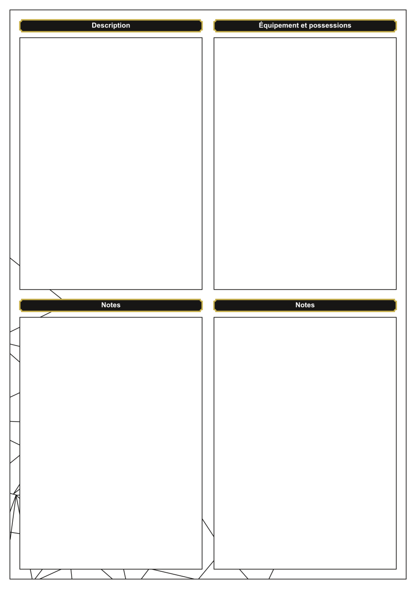 Voici la fiche que j'utilise pour mes (trop rares) parties de COC. Reco-verso, A4, conçue pour être utilisée avec des cartes de Voies.