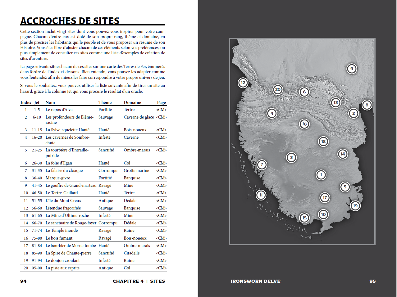 Il contiendra des rappels des règles importantes et des oracles, pour Ironsworn mais aussi –spécialement pour la VF– pour Delve. Il vous permettra donc de vous référer, voire de jouer n'importe où sans avoir à transporter en permanence Ironsworn et Delve dans votre sac.