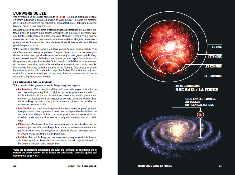 @Guliver Alors, je n’ai aucun lien avec l’auteur ou bien l’éditeur. Heureux possesseur des ouvrages en VO, je relaie ici les infos du financement, content de voir le jeu sortir dans la langue de Molière. 500 nuances de geek ne fait que traduire les ouvrages. Je ne suis pas un spécialiste en astronomie, mais pour répondre à tes interrogations la Forge est un bien un amas globulaire. NSC 8412 sert à désigner la galaxie autour de laquelle évolue la Forge.
