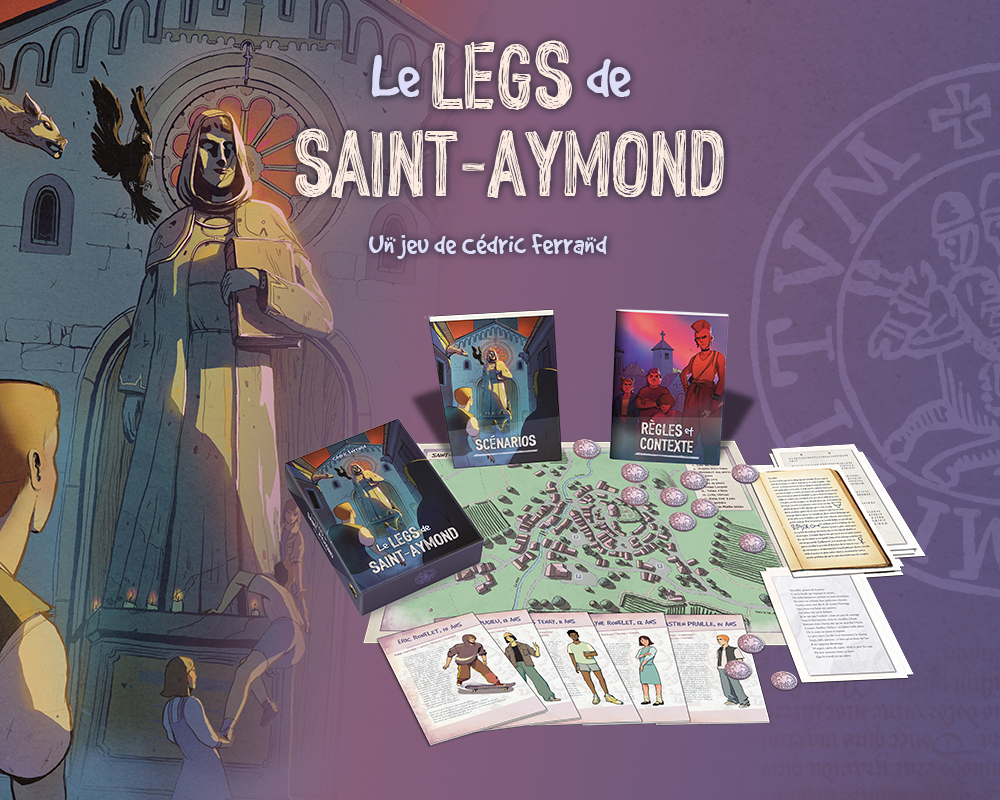Lundi 26 août nous proposons un financement participatif sous le label LudiKa (Mnémos / XII Singes) pour un jeu-campagne de Cédric Ferrand : Le Legs de Saint-Aymond. Vous pouvez cliquer sur l'image pour vous inscrire au mail de lancement si cela vous intéresse :
