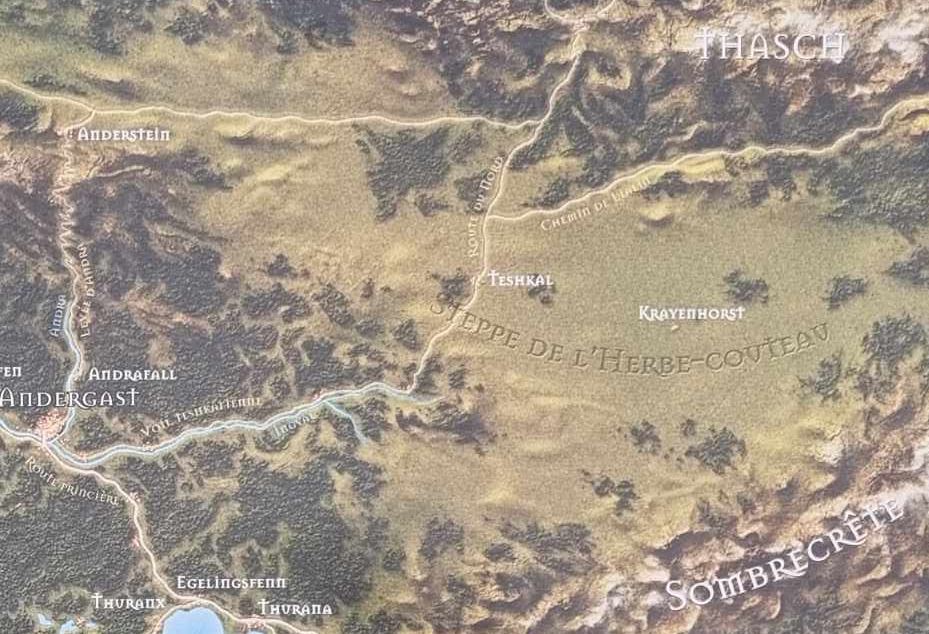 3. Dernière surprise, les noms de certains lieux sont différents... Par exemple: Les steppes de l'herbe-couteau, dans la seconde carte, Steppe des trancheherbes dans la première...