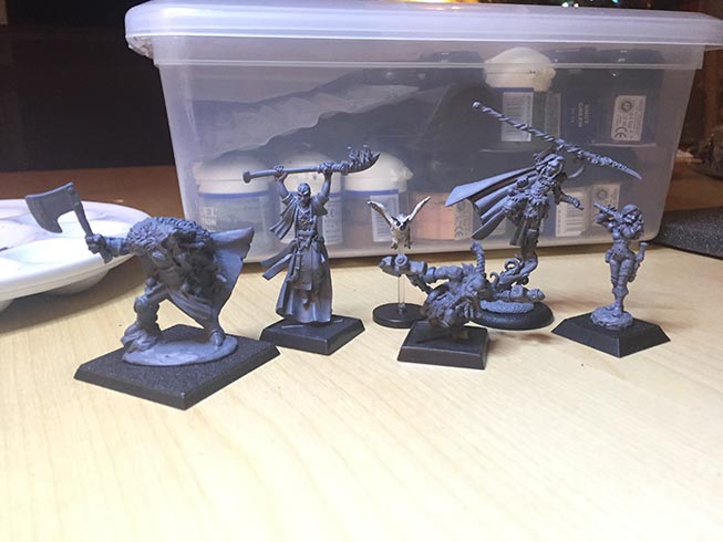 Je les ai acheté en métal, montées et j'ai passé une couche de base. Certaines Reaper existent aussi dans leur gamme résine : https://www.reapermini.com/Miniatures/Bones