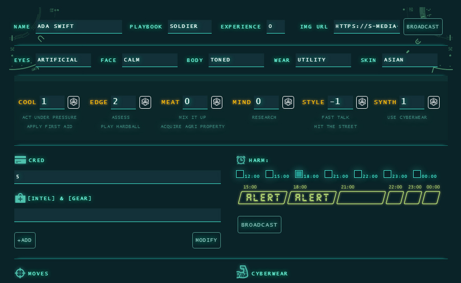 La fiche pour Brigandyne est disponible pour tous sur Roll20.