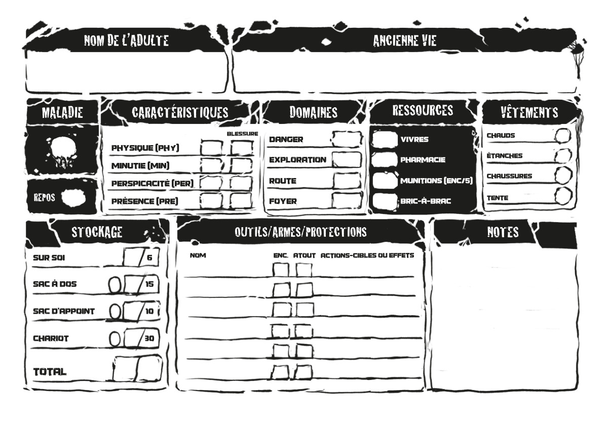 Après plusieurs remaniements du système, la nouvelle fiche de personnage