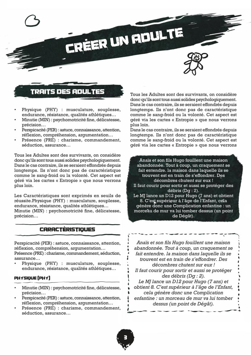 "Je partage le point de vue d'Idao sur pas mal de points. Le jeu est atypique et ne laissera pas indifférent les joueurs qui s'y essaieront. L'ambiance du jeu est sombre mais cela donne de la valeur aux moments de joie simple avec les enfants à protéger. C'est un jeu engageant émotionnellement avec des dilemmes moraux qui sont exacerbés par la présence et la responsabilité que les PJ ont à l'égard des enfants. Paradoxalement, on voit émerger de la poésie dans un monde désespéré.