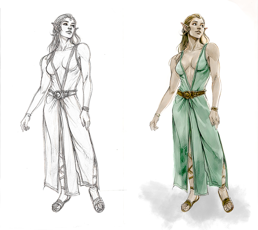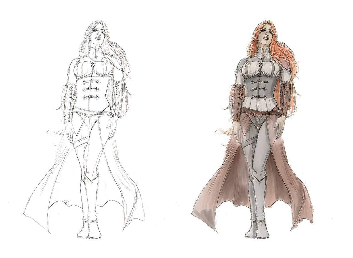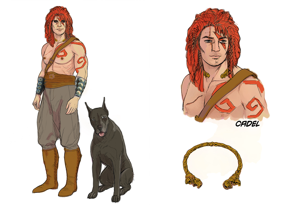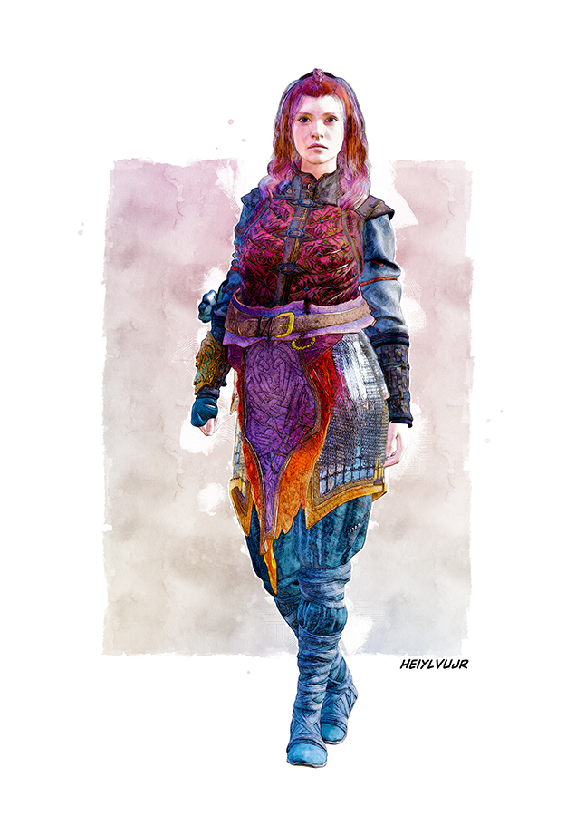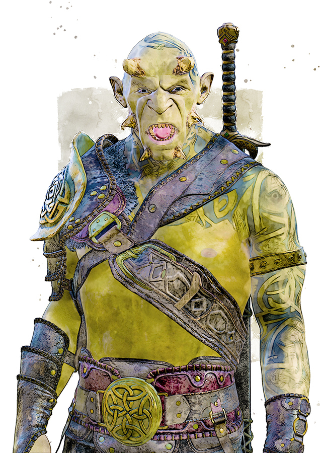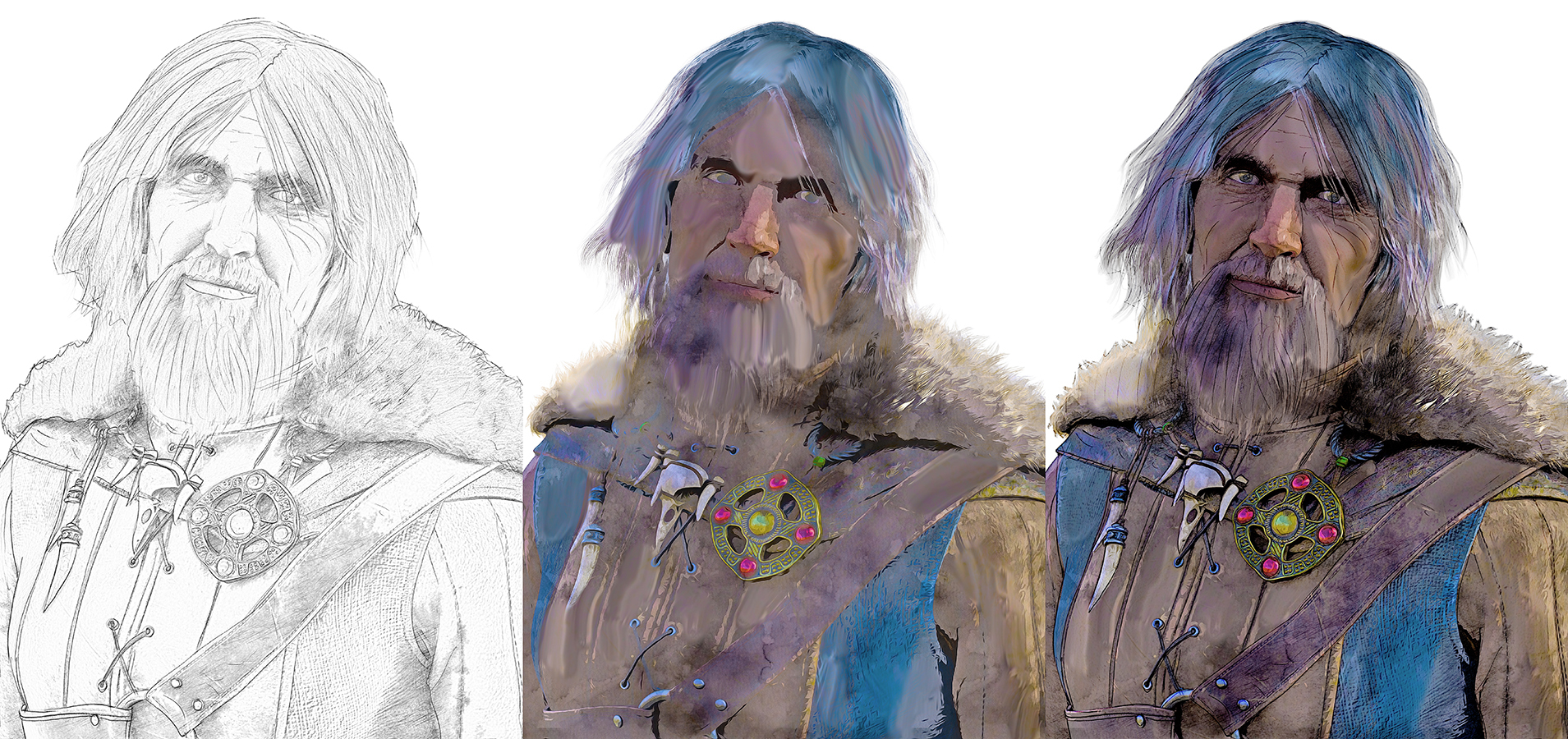 Je suppose que ma réaction peut provenir du fait que tu travailles beaucoup les textures de détail (tatouages, tresses, plumes, étoffes, briques, etc.), qui sont superbes, tandis que la composition d'ensemble est parfois moins aboutie. Pour les boucles de cuir, j'ai été induit en erreur par le fait qu'elles ont souvent l'air plates et plaquées aux surfaces, ce qui ne fait pas naturel. Pour l'orque à la fin par exemple, on ne sent pas le poids de l'épée dans le dos qui devrait logiquement tendre la bandoulière. Mais il y a des images où tu le fais bien, comme sur l'épéiste blond (sous la dame au chapeau à plumes) où le poids des armes sur le baudrier est très bien rendu.
