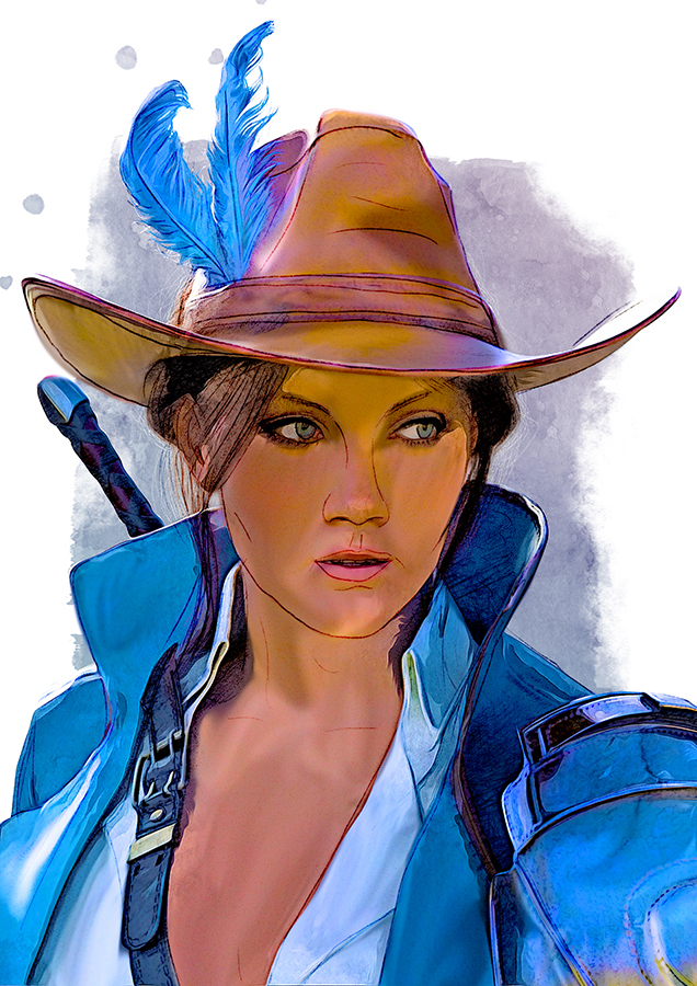 Je travaille sous Photoshop, avec des filtres, contour, colorisation et retouche à la tablette avec bien sûr des références/patchwork. (En effet, ça demande pas mal d'heures...