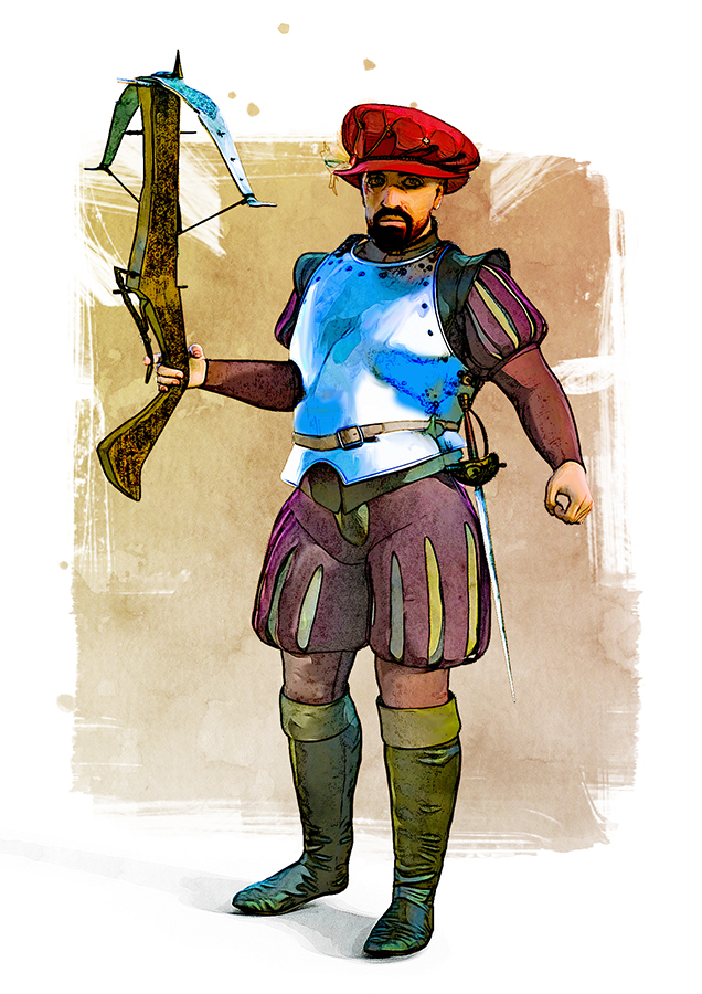 Ça ressemble beaucoup à des images générées par IA, au moins à titre de base. Les ceintures à boucle partout (même par-dessus le bas du plastron de l'arbalétrier) ou à des endroits étranges (sur la deuxième série d'images, la guerrière à chapeau à plumes porte une épée dans le dos, mais la bandoulière passe sous le col haut de son manteau donc je me demande comment l'épée y est accrochée) et qui épousent trop la forme du corps comme un tissu fin là où une bandoulière en cuir se comporterait différemment (même chose avec la fibule circulaire du guerrier barbu celtique au début : elle donne l'impression de se déformer comme une feuille de papier posée sur la poitrine), les poses assez rigides, la composition qui commet des erreurs qu'un humain commetterait moins (sur la vue du port, la mouette est difficile à distinguer des nuages derrière ses ailes, et le bâtiment sous ses pattes a une forme et une perspective pas claires du tout), etc.