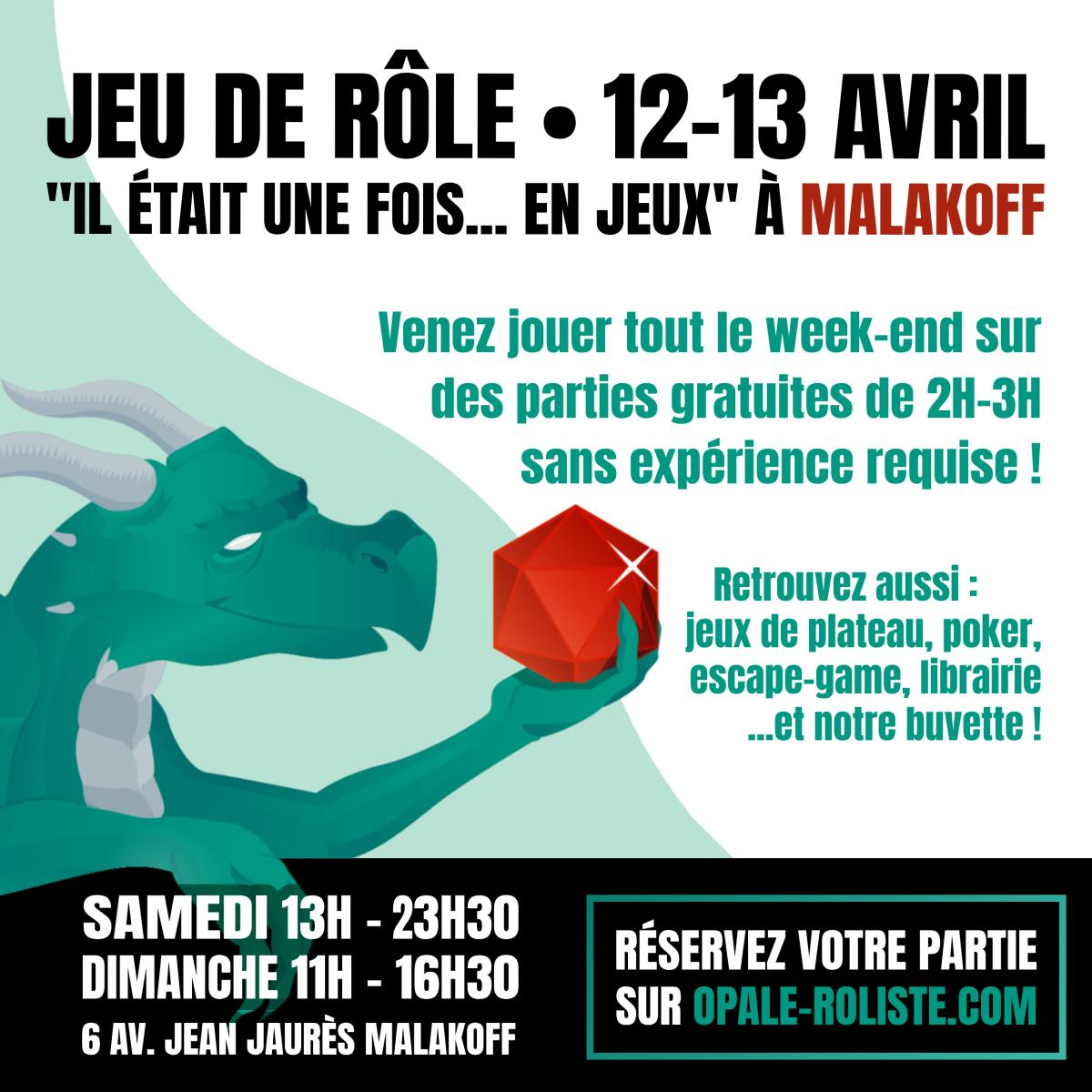 Du jeu de rôle tout le week-end du 12-13 avril à Malakoff (92) 1