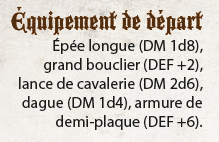 Cela veut donc dire que comme le chevalier commence avec un grand bouclier +2 et une armure demi-plaque +6, que sa défence est de +6 (et non +8 comme on pourrait l'imaginer ?). Dans ce cas là, aucun intérêt à garder le bouclier et il vaut mieux partir sur une arme à 2 mains non ?