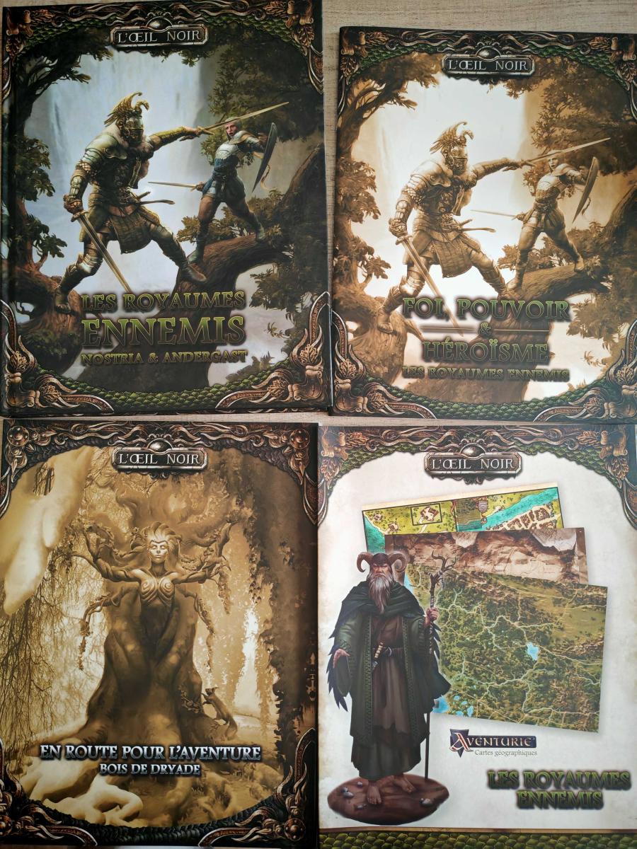 - Les Royaumes Ennemis Nostria & Andergast : suppléments de lieux, rêgles et professions.