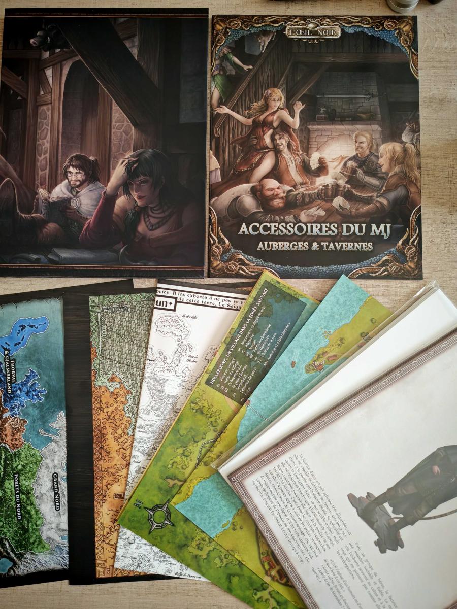 - les accessoires du MJ : écran de jeu plus rêgles sur les tavernes.