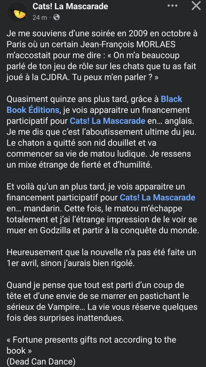 Forums JDR de Black Book Editions > Jeux de rôle > JdR Black Book > Cats! La Mascarade