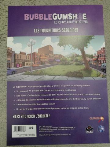 - tout le contenu des Fournitures Scolaires (écran, aides de jeu, fiches cartonnées des pnj, ...)