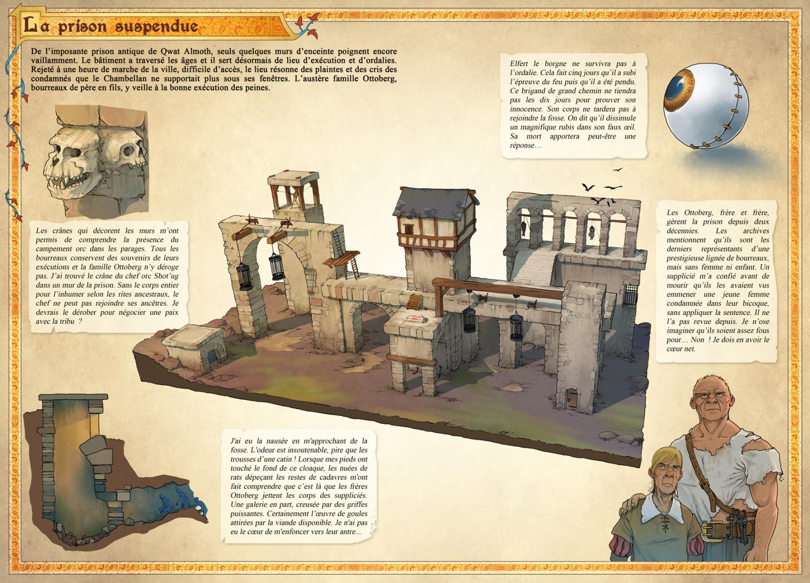 Autre chose, les lieux seront croisés pour que les joueurs puisent regarder le dessin et que le meneur de jeu puisse lire les secrets en même temps. Il y aura donc des montages du type "vue générale prison recto" / " vue des secrets auberges verso"