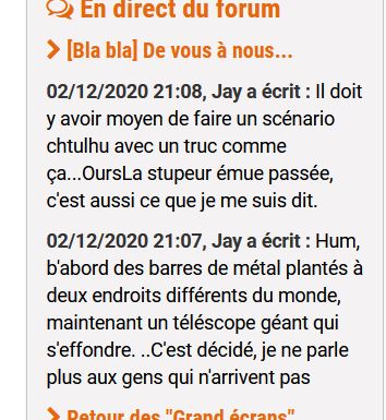 Oui mais non. C'est pas moi qui ai écrit ces deux débuts de message. Apparemment, le direct du forum ne gère pas idéalement les quotes. D'ailleurs, il y a quelques bugs sur le site (dans la fenêtre de recherche, par exemple), peut-être y aurait-il moyen de créer un topic "fonctionnement technique du site et du forum", manière de les signaler à qui de droit, pour rendre service.