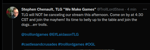 Ca se précipite, on dirait : Gizmondo fait état du fort mouvement de désinscriptions sur D&D Beyond, et fait le lien avec l'annulation du stream prévu ce soir... https://gizmodo.com/dungeons-dragons-ogl-announcement-wizards-of-the-coast-1849981365
