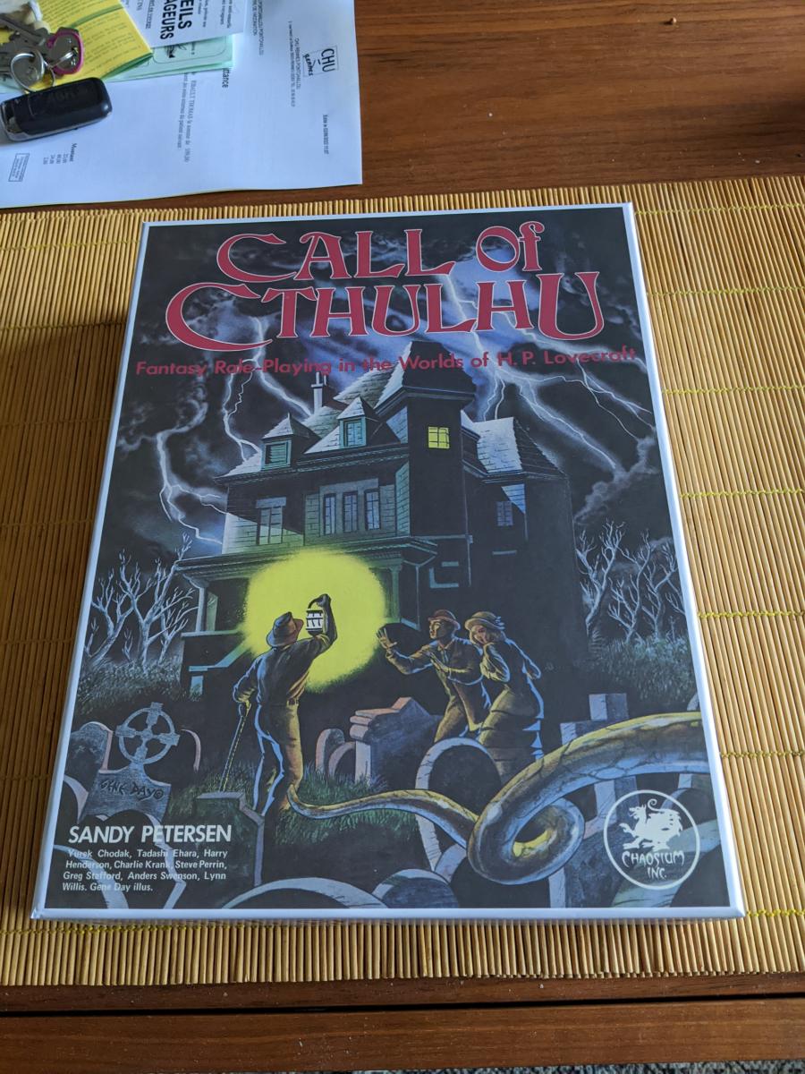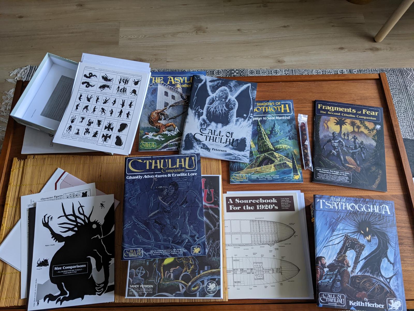 Je viens de recevoir mon pledge du Call of Cthulhu Classic qui reprend la boite iconique de la V2. C'est vraiment joli et j'aime beaucoup cette idée de faire des petits livrets séparés pour les règles/les scénars/les aides de jeu. (oui, je sais c'était comme ça avant mais moi je ne connaissais pas