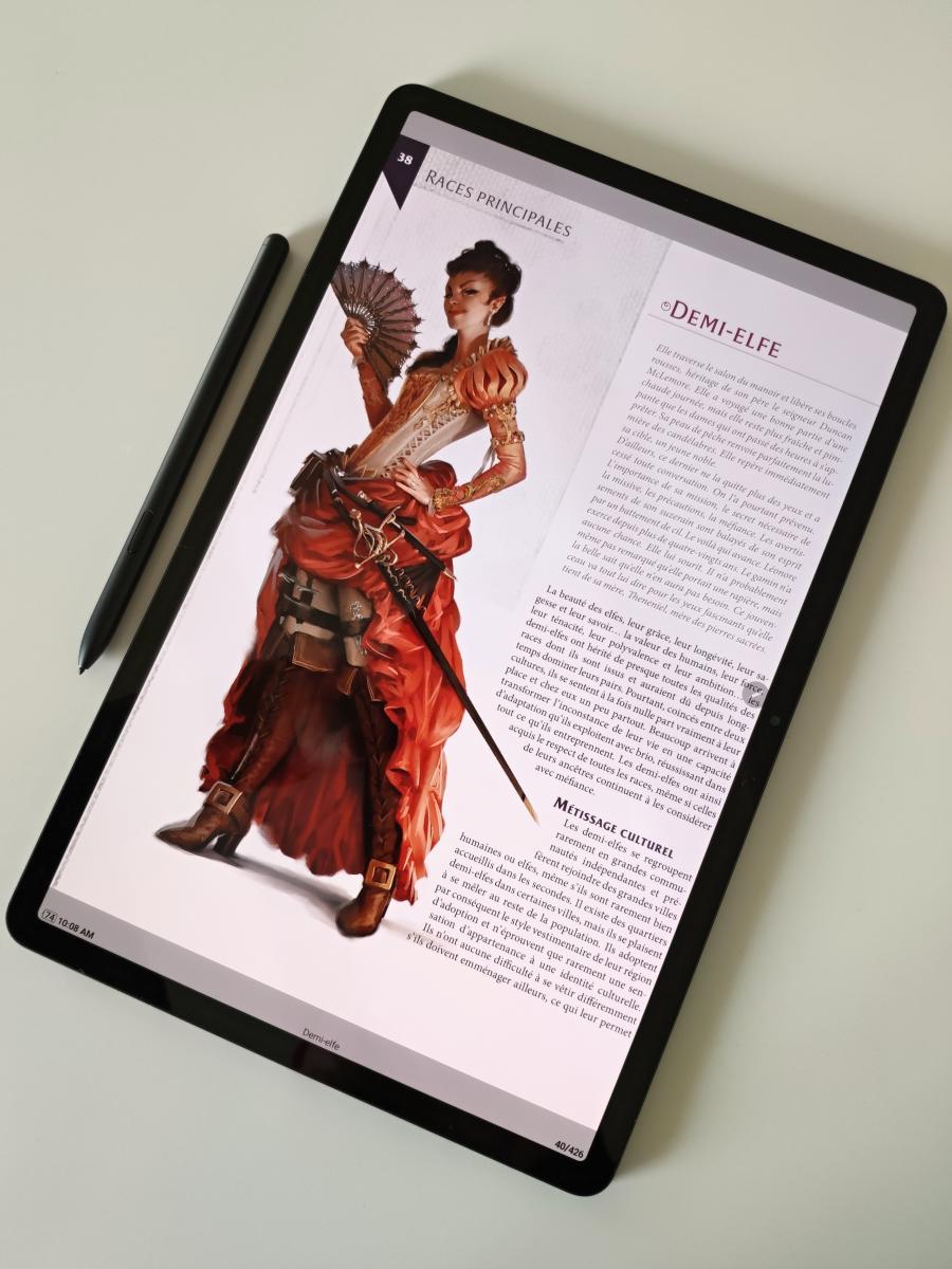 J'ai l'impression d'avoir un appareil futuriste, l'écran est tout simplement exceptionnel (OLED pour la S7+) et la tablette légère à moins à 600 gr. Et puis super rapide pour balayer les pages du gros pdf du manuel des règles de H&D.