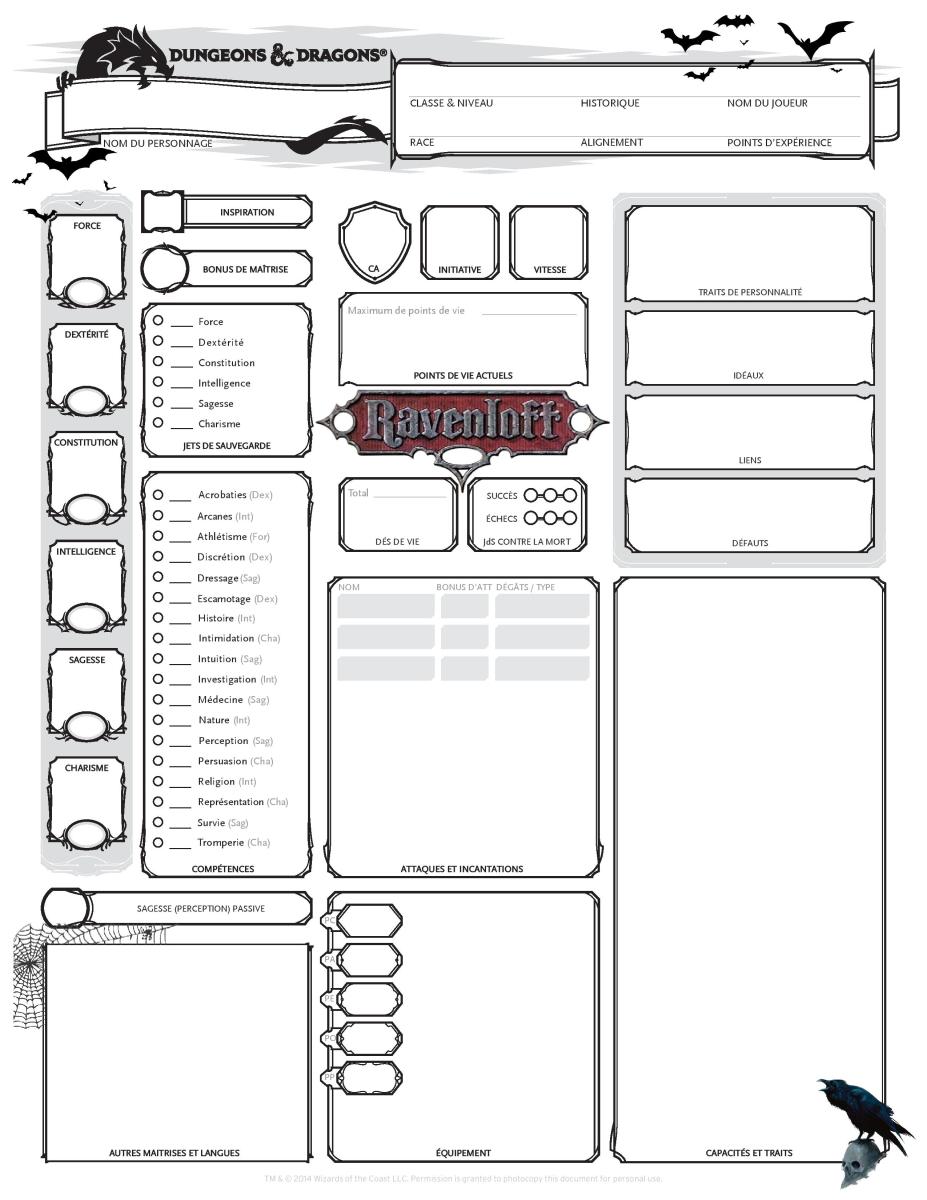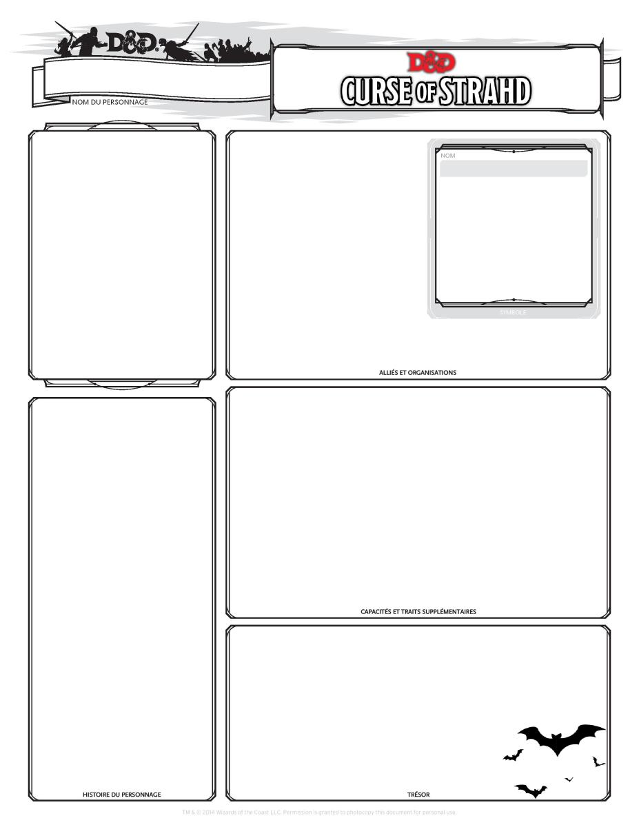 Bonjour à tous , je cherche une version relookée de la feuille de personnage 5e qui serait adaptée au contexte de la malédiction de Stradh. Est ce que vous avez des conseils ?