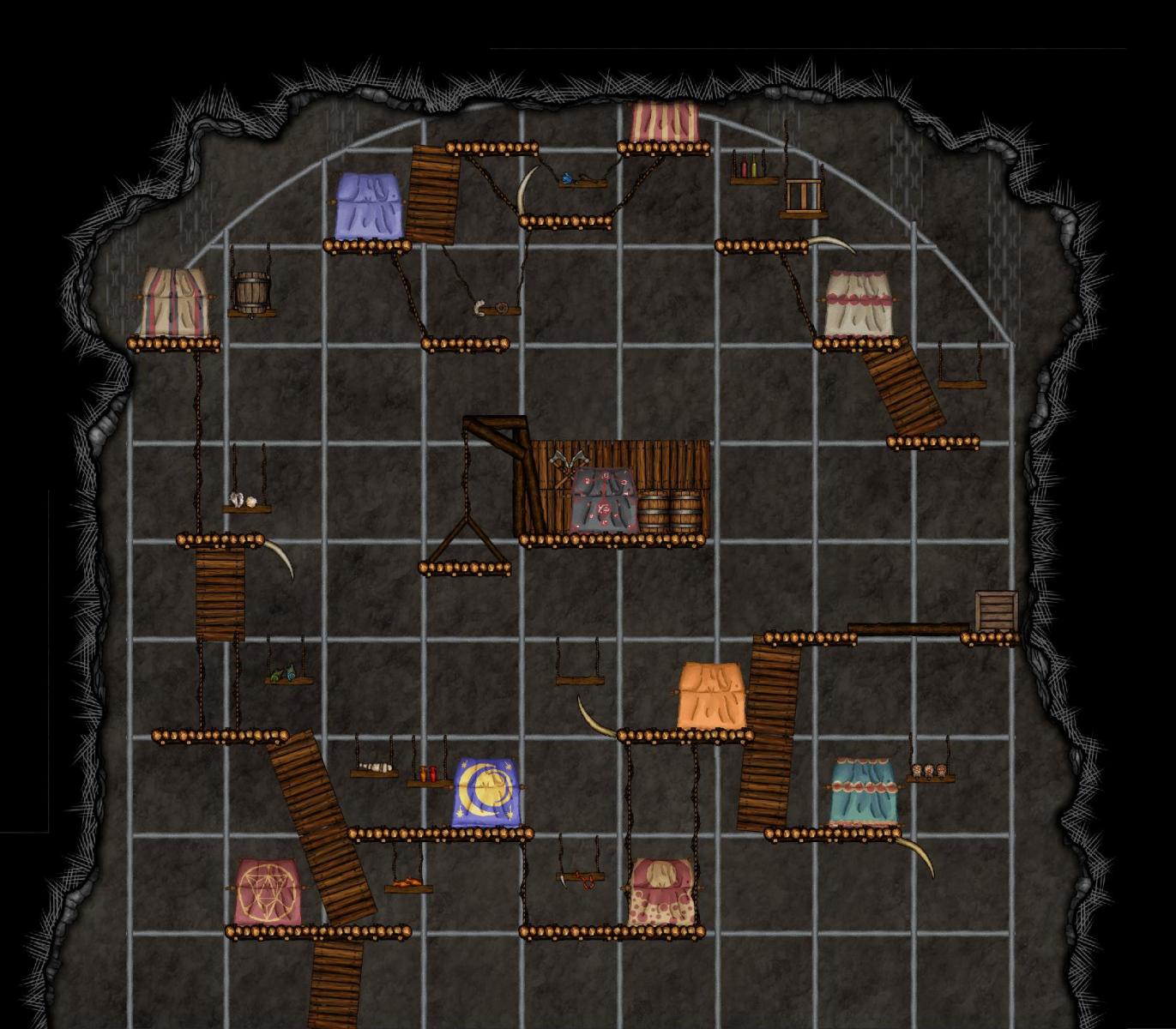 En visuel, même si je suis pas "content" du résultat, cela donne une map verticale du genre. Entre chaque barreau, il y a 2 mètres. Les PJ vont devoir escalader la Herse pour déloger les Fils du dessous, en zigzaguant entre les habitations instables et les ponts de fortunes..jpg)