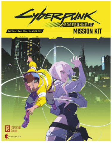 Nouvelle parution : Cyberpunk : Edgerunners Mission Kit, une boîte sur le même modèle que le Jumpstart Kit de 2019, pour jouer dans l'ambiance de la série d'animation Cyberpunk : Edgerunners, et donc pour jouer une version Cyberpunk 2077.