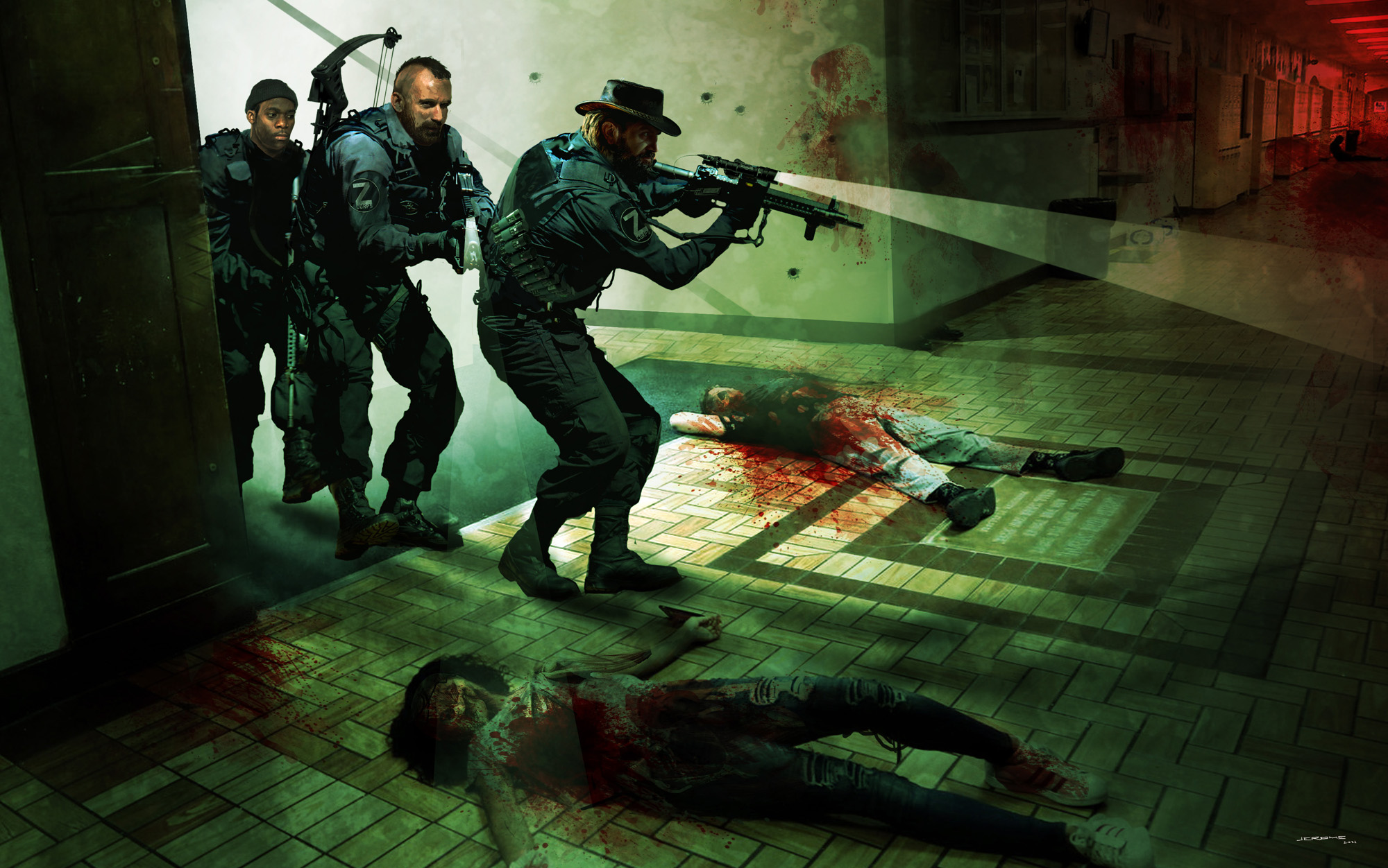 Jérôme Huguenin continu ses magnifiques illustrations en couleurs qui rendent si bien l'ambiance de Z-Corps. Voici une nouvelle illustration inédite.