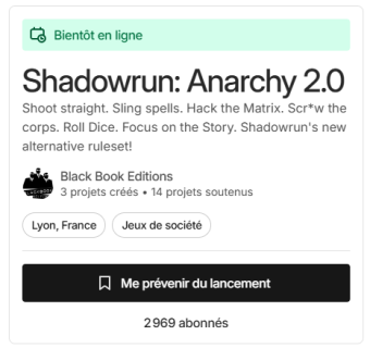 Shadowrun Anarchy 2.0 - C'est parti !!! - Lien au KS ajouté au premier post 253