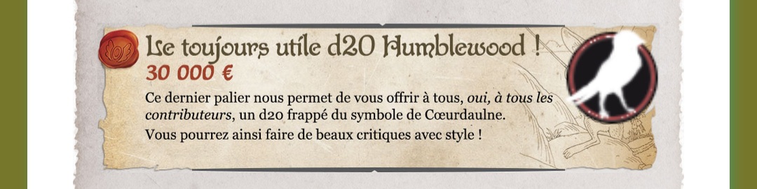 Palier mystère dévoilé : pas de scenario bonus de créa française, mais quand même ya le beau geste! Seuil des 29 000 euros passé...