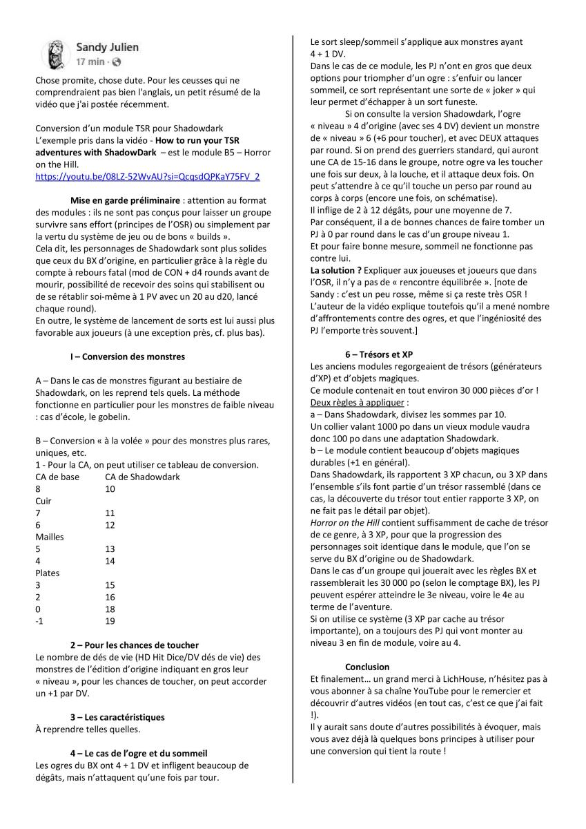 Suite à un post de sandy julien sur le groupe FB : Conversion d’un module TSR pour Shadowdark