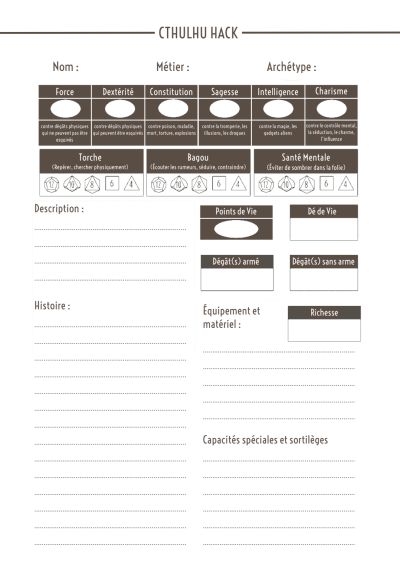 Bref, avec ce "C Hack au carré", la fiche de perso chez mes joueurs se réduit à juste ça: