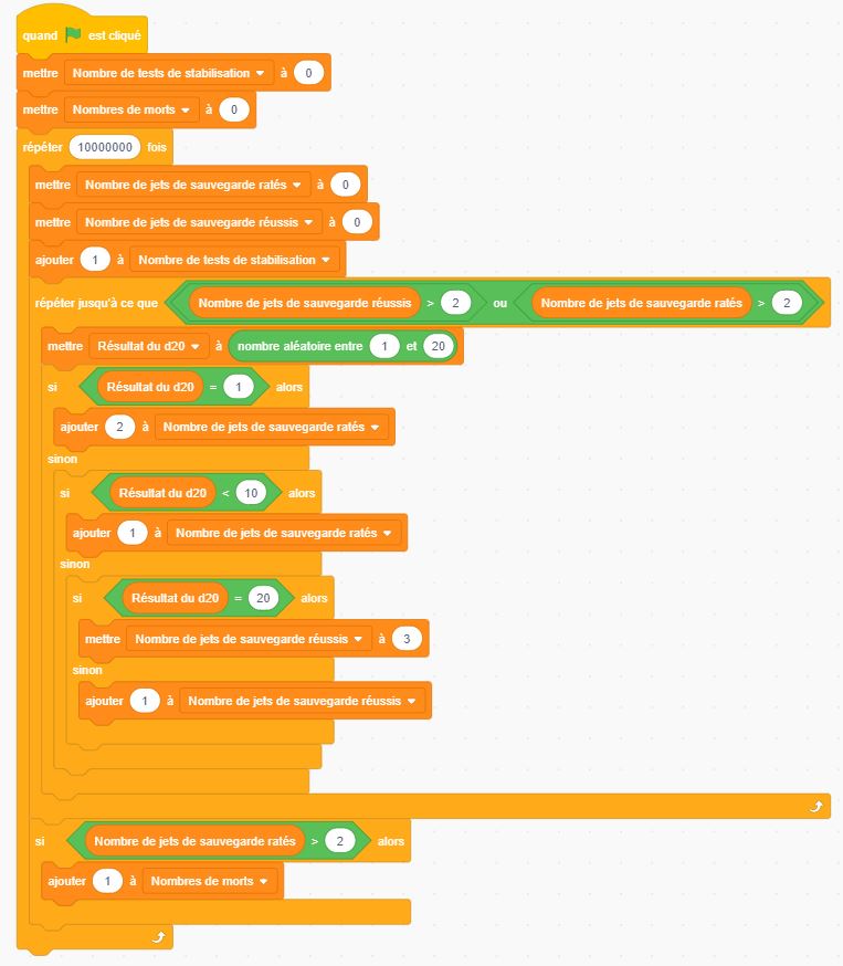 Donc j'ai simulé 10 000 000 de fois avec Scratch, ça va beaucoup plus vite :