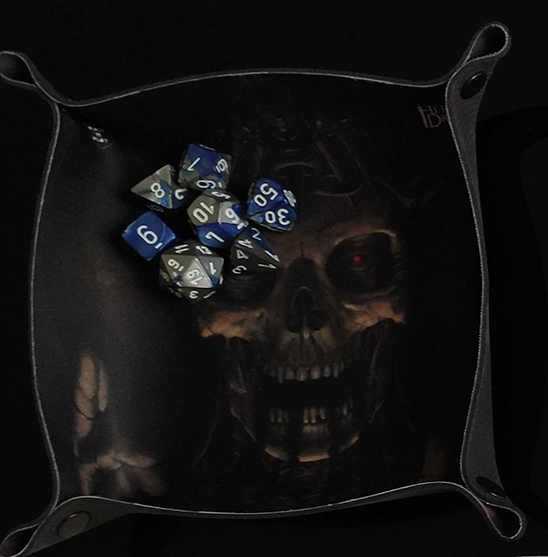 Note : ça aurait pu être une tour à dés, mais je n'aime pas trop l'idée d'avoir un bloc de bois/plastique tout dans la hauteur devant un joueur. Je trouve que ça isole les jets de dés encore plus des autres joueurs et personne ne peut voir le résultat des dés à part le joueur qui les jette. C'est souvent joli, mais moins convivial.