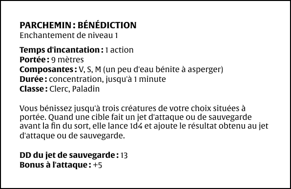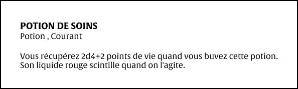 J'imprime aussi les objets que les personnages trouvent lors d'une campagne. Tout du moins, ceux avec un effet trop complexe pour être noté à la va vite. Ci-dessous quelques exemples :