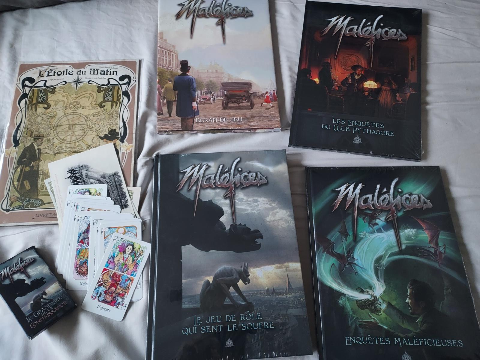 Nous venons de réaliser que nous avons un soucis avec le tarot de Maléfices… L'une des cartes a été mal imprimée et le dessin n'est pas le bon (la carte du Sorcier a le dessin de L'Artiste). Nous sommes déjà en train de corriger cela en faisant réimprimer la carte erronée que nous vous enverrons dès que possible par voie postale. Le tarot reste utilisable en l'état pour le tirage des personnages. Nous sommes désolé de ce soucis, il semble que le mauvais œil se soit penché sur ce tarot.