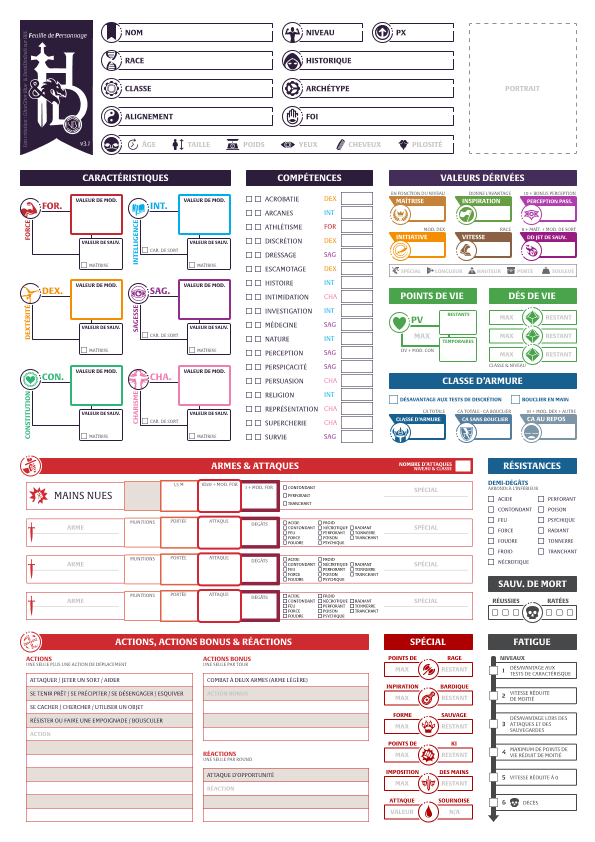 Version 3.1 disponible avec quelques optimisations (plus d'espace pour les compétences, équipements, etc.)