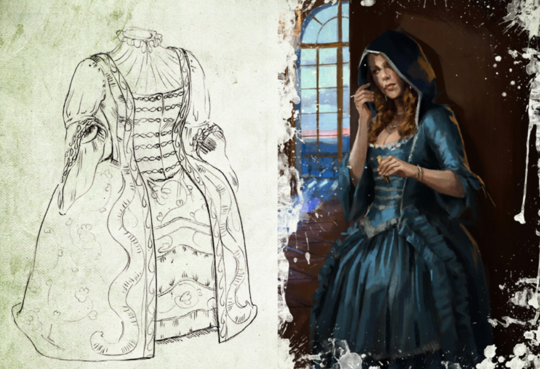 La question qui n'a cessé de nous suivre lors du développement était de savoir si nous devions respecter les canons historiques ou si nous pouvions prendre quelques libertés. Certains films ou séries ont adopté cette dernière approche et, finalement, nous avons décidé de laisser le joueur choisir comment il voyait son personnage. Ainsi, même si les illustrations des livres sont souvent un peu plus libres, les esquisses des vêtements typiques de l'époque (de Sergei Ermolaev) présentées dans le livre 1 respectent le plus fidèlement possible les modèles historiques.