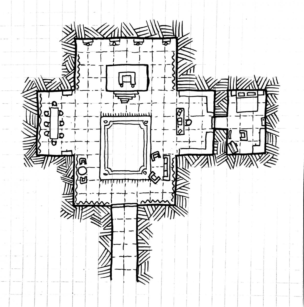 J'ai repris la carte du château de l'épuration de Raven'Ill mais je l'ai modifier pour rajouter les appartements et le bureau de Mamert le Bon, une salle avec un trône ou siège Meryom et les appartements de Meryom.
