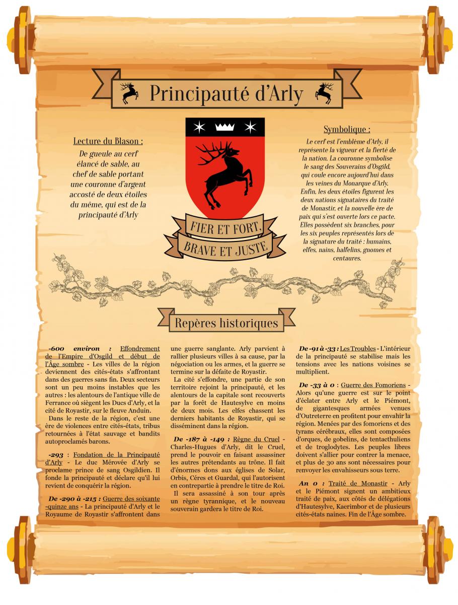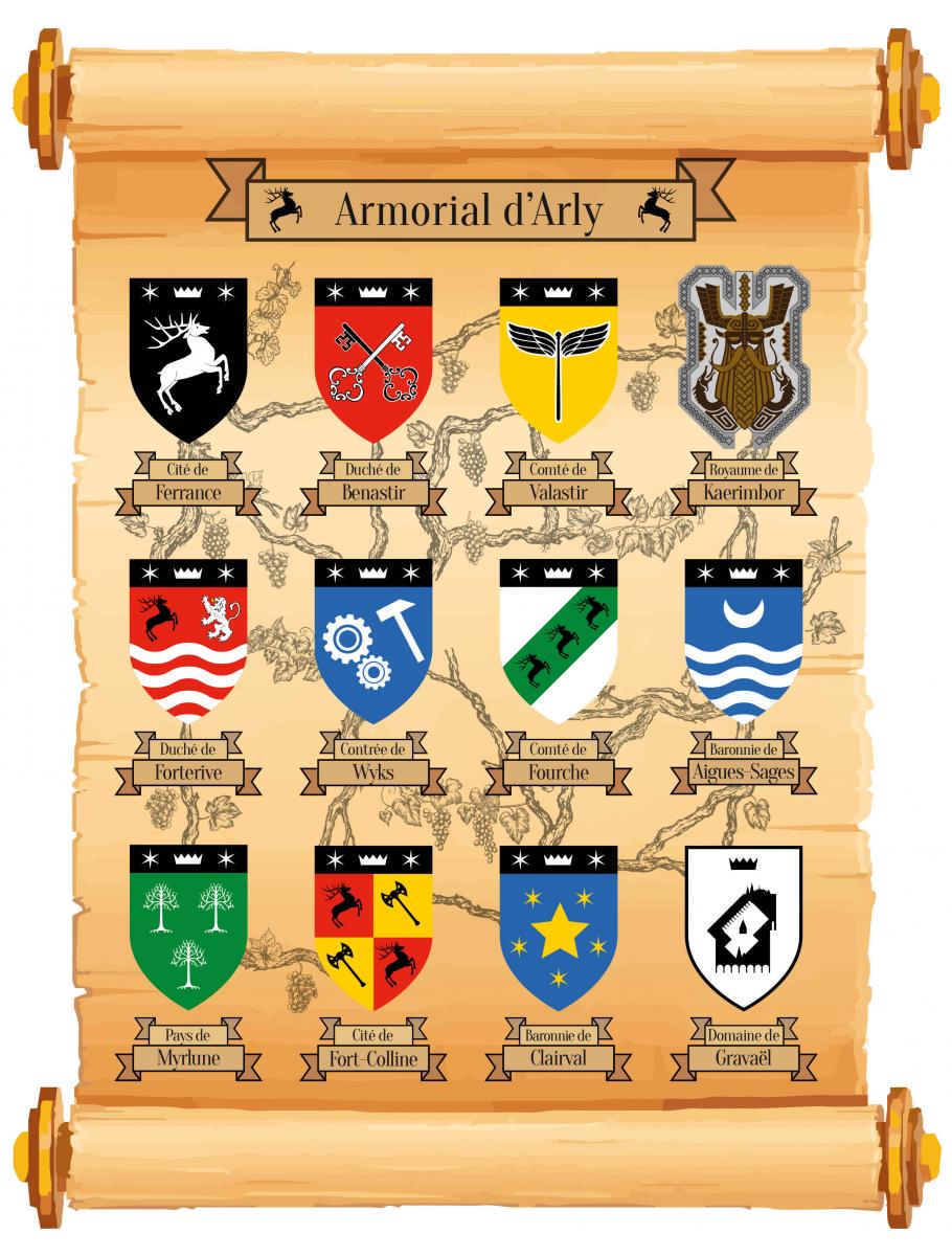 Ce sont des armoriaux (non canoniques car certaines villes et la plupart des évènements n'existent pas dans la gamme) pour Arly, les Marches et le Ponant. Ils seront dans l'atlas.