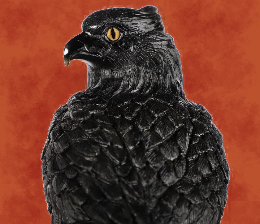 J'ai également trouvé une photo d'une sculpture d'un rapace que j'ai retouché légèrement au niveau des yeux afin d'en faire une illustration de l'aigle aux yeux d'ambre (alias L. Kernos).