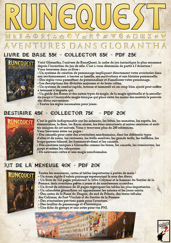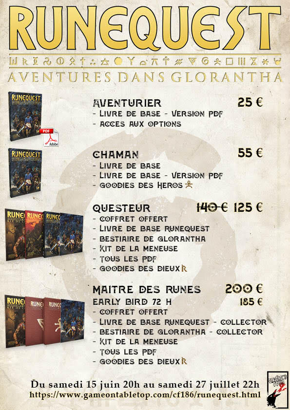 En plus d'un live ce samedi à 20 h pour le lancement de la précommande participative de la VF de RuneQuest, les options suivantes seront disponibles (perso, je recommende fortement le compteur de rang d'action, super pratique):