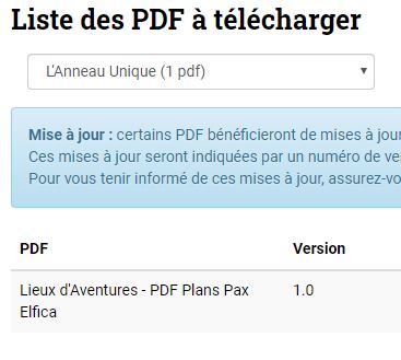 Pour l'onglet de sélection oui si ce n'est pas BBE c'est en vrac dans mon cas. Sauf le pdf "Lieux d'Aventures - PDF Plans Pax Elfica" qui est dans l'onglet "L'Anneau Unique" ...