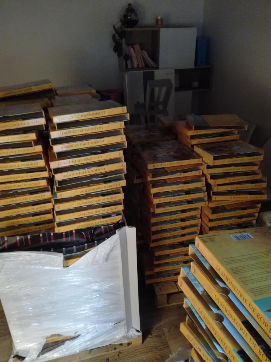 on y arrive, on y arrive ! Avec un petit décalage de 2 mois sur la date annoncée les livres devraient être expédiées fin août / début septembre. Je viens de recevoir les 5 palettes aujourd'hui. Il faut maintenant mettre les fiches dans les étuis, faire les paquet et mettre les adresses... et les enfants qui sont encore en vacances... vivement qu'ils rentrent héhéhéhé